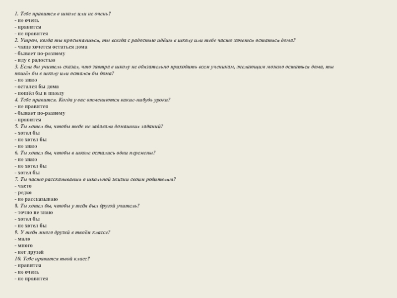 Слайд 41. Тебе нравится в школе или не очень?