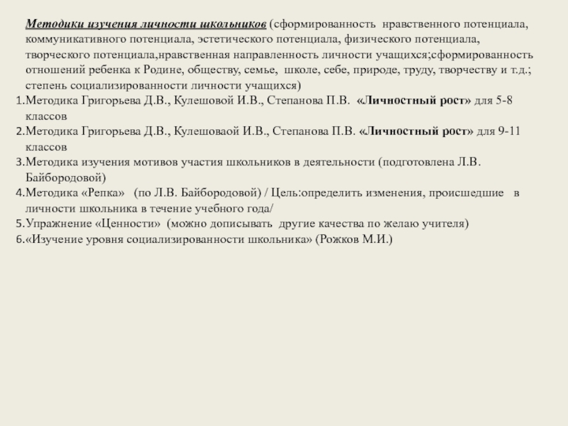 Слайд 17Методика для изучения социализированности личности учащегося