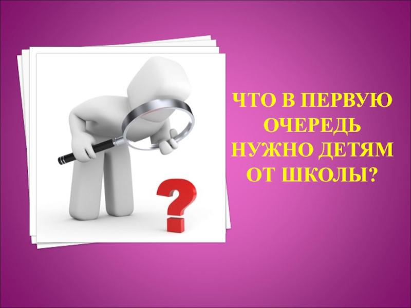 Слайд 13ЧТО В ПЕРВУЮ ОЧЕРЕДЬ НУЖНО ДЕТЯМ ОТ ШКОЛЫ?