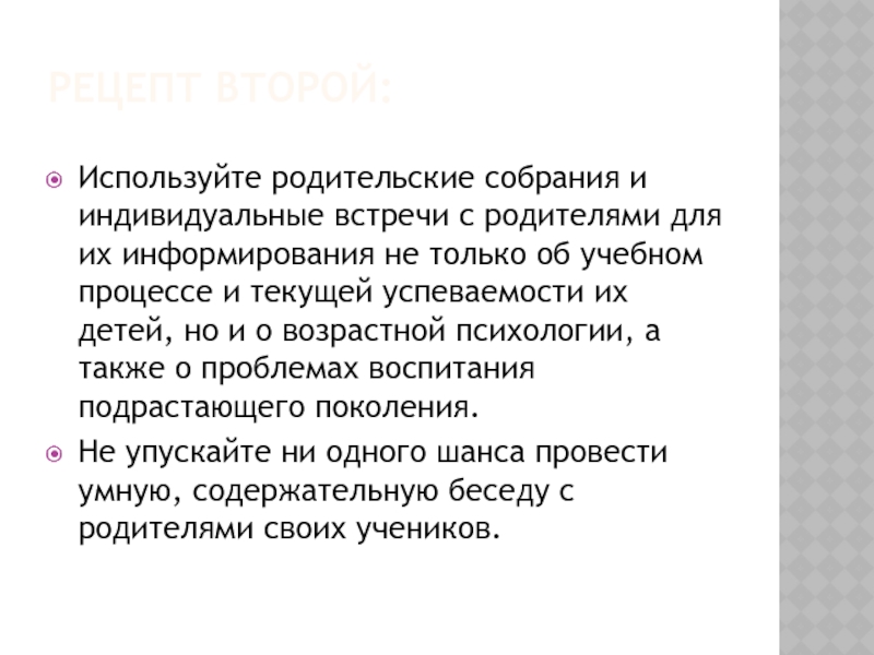 Не упускайте ни одного шанса провести умную, содержательную беседу с родителями своих учеников.
