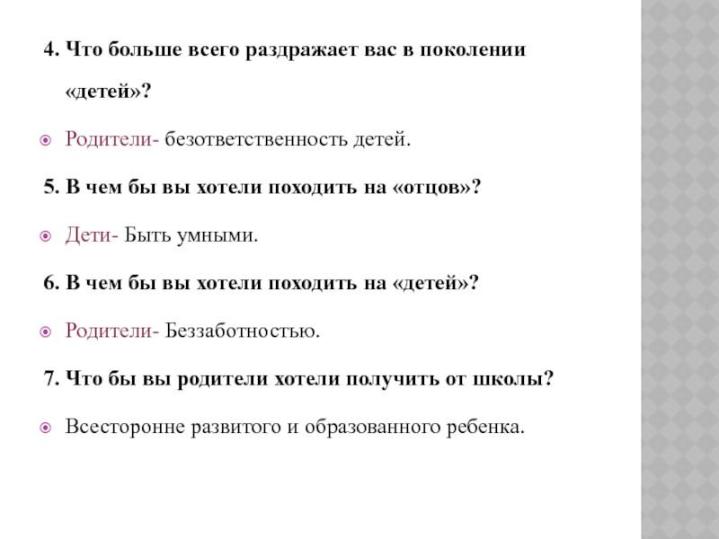 Слайд 214. Что больше всего раздражает вас в поколении «детей»?