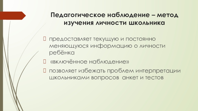 Слайд 26Педагогическое наблюдение – метод изучения личности школьника