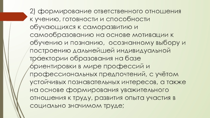 Слайд 42) формирование ответственного отношения к учению, готовности и способности обучающихся к саморазвитию