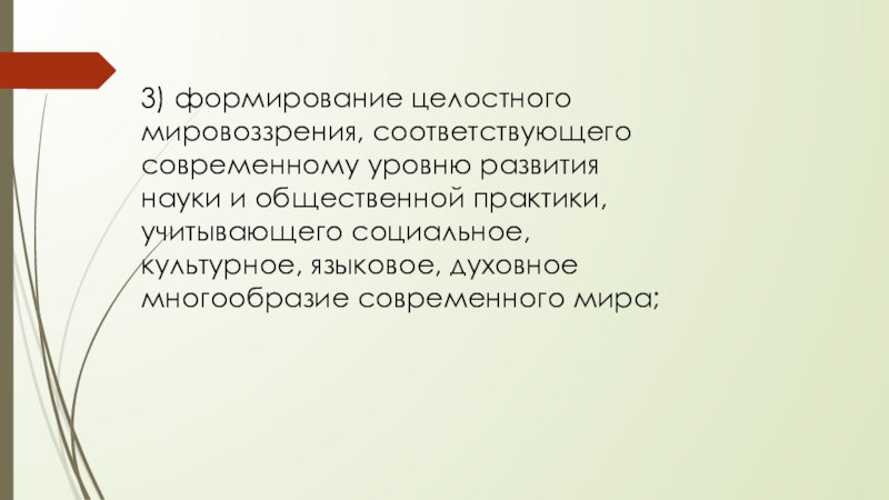 Слайд 53) формирование целостного мировоззрения, соответствующего современному уровню развития науки и общественной практики,