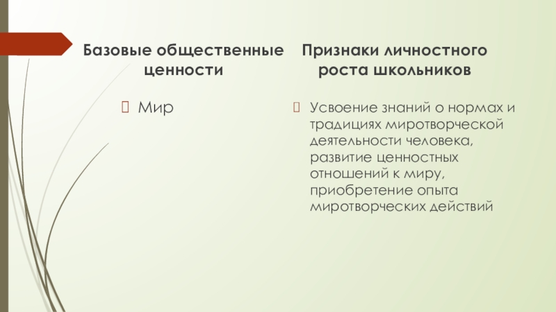 миротворческой деятельности человека, развитие ценностных отношений к миру, приобретение опыта миротворческих действий