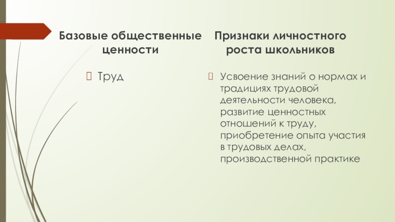 трудовой деятельности человека, развитие ценностных отношений к труду, приобретение опыта участия в трудовых делах, производственной практике