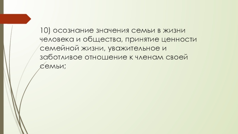 Слайд 1210) осознание значения семьи в жизни человека и общества, принятие ценности семейной