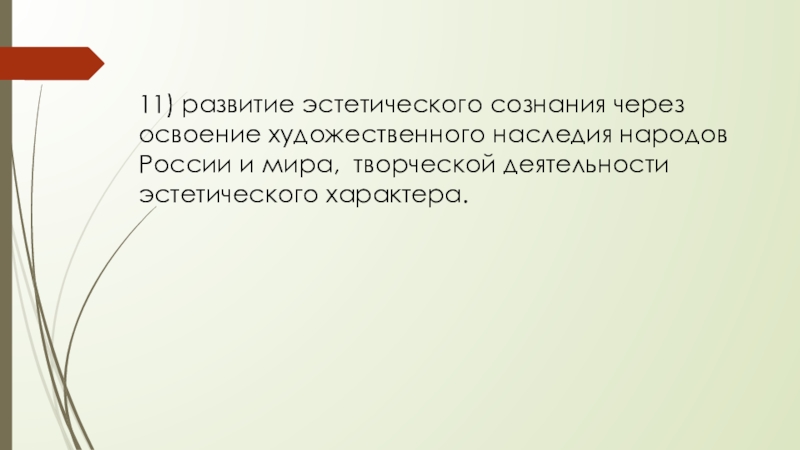 Слайд 1311) развитие эстетического сознания через освоение художественного наследия народов России и мира,