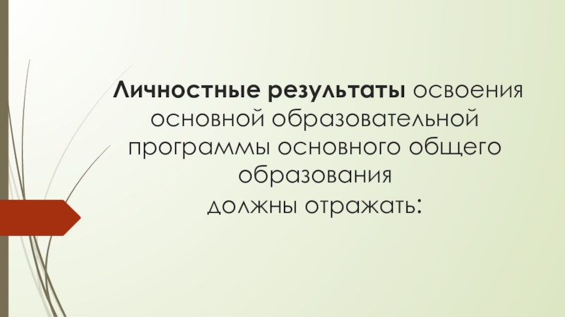 Слайд 2 Личностные результаты освоения основной образовательной программы основного общего образования