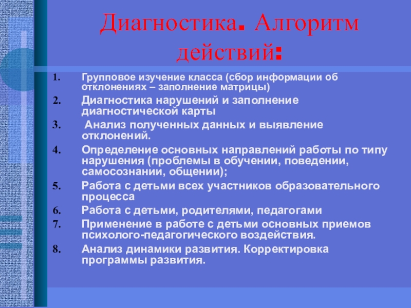 Диагностика нарушений и заполнение диагностической карты