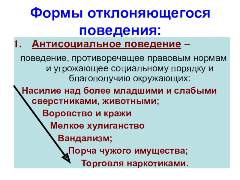 Слайд 7Формы отклоняющегося поведения: