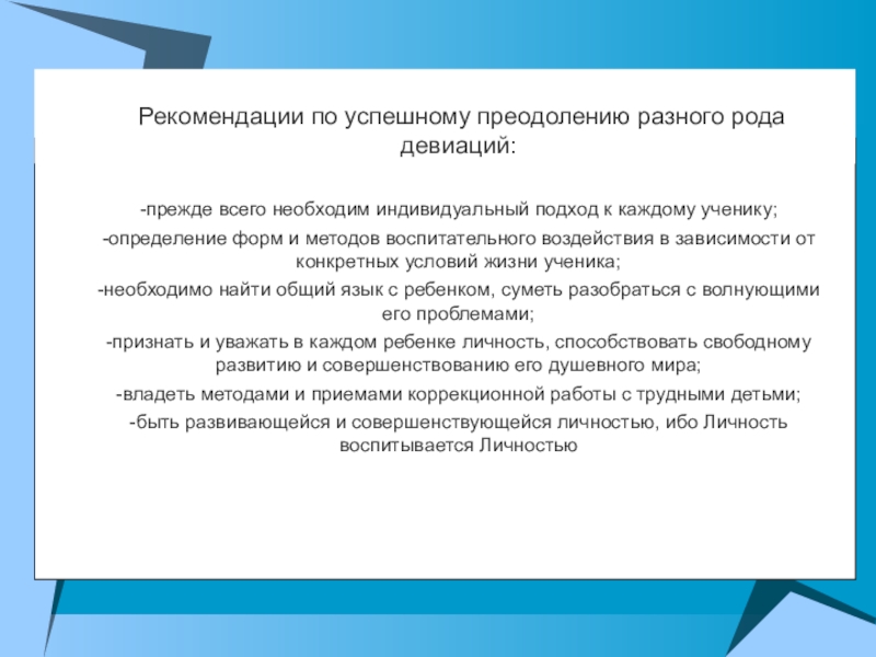 Рекомендации по успешному преодолению разного рода девиаций: