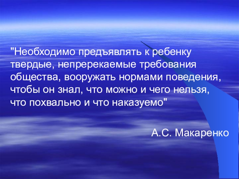 "Необходимо предъявлять к ребенку твердые, непререкаемые требования общества, вооружать нормами поведения,