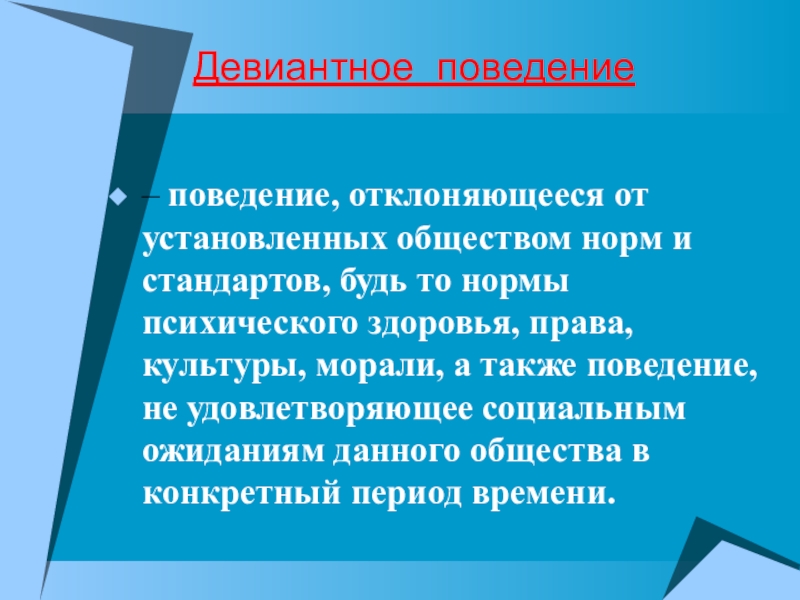 – поведение, отклоняющееся от установленных обществом норм и стандартов, будь