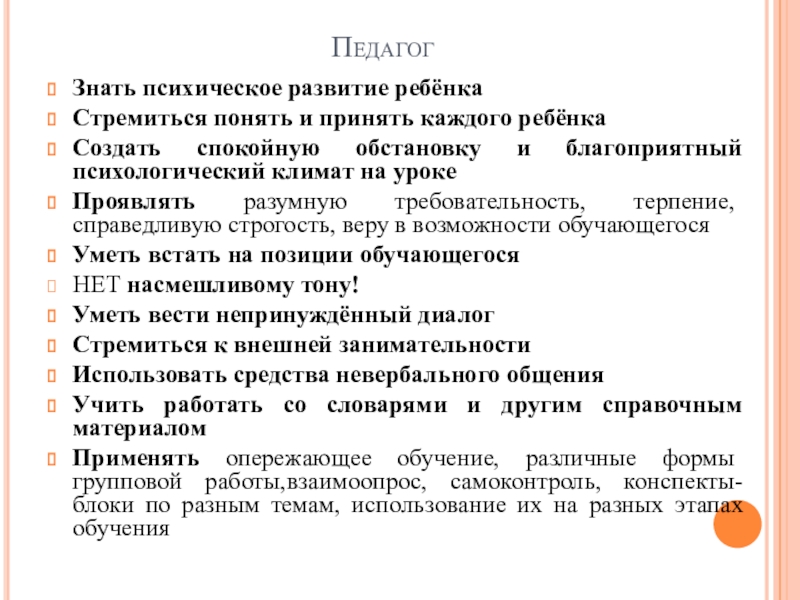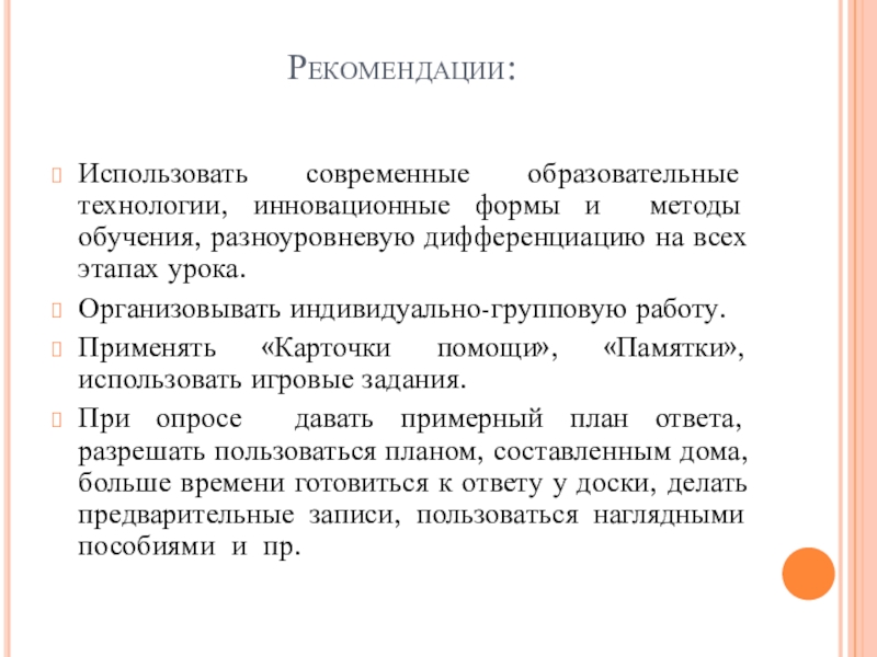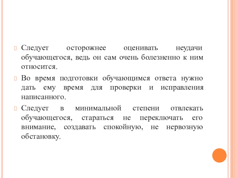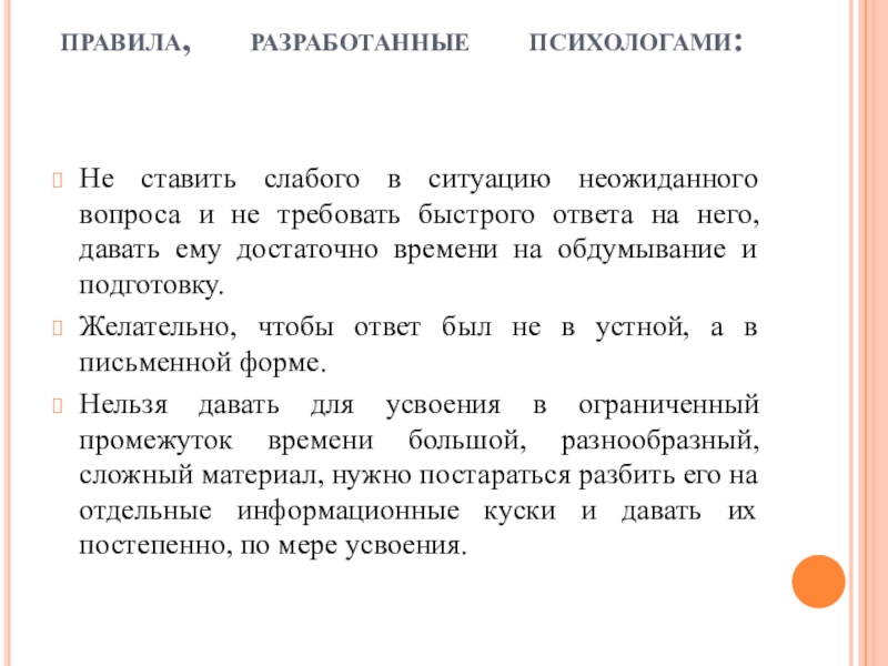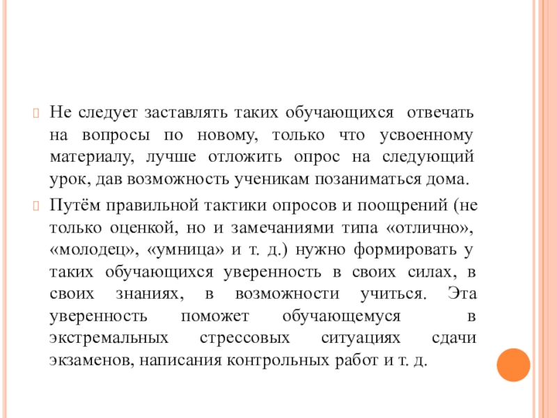 Слайд 12Не следует заставлять таких обучающихся отвечать на вопросы по новому, только