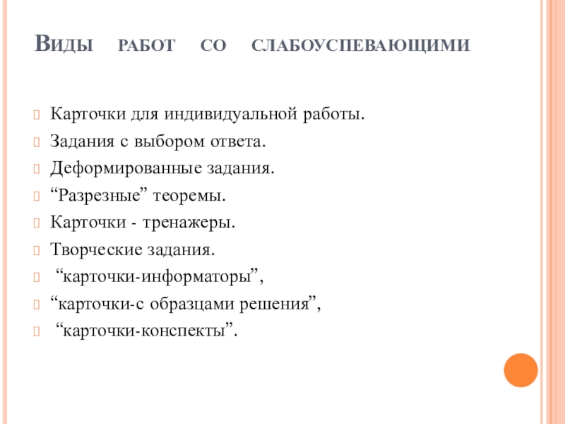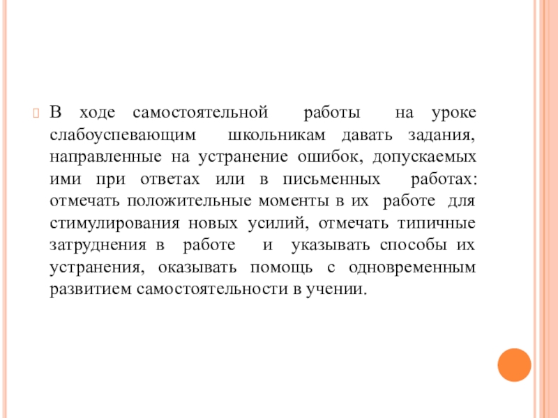 Слайд 16В ходе самостоятельной работы на уроке слабоуспевающим школьникам давать задания, направленные