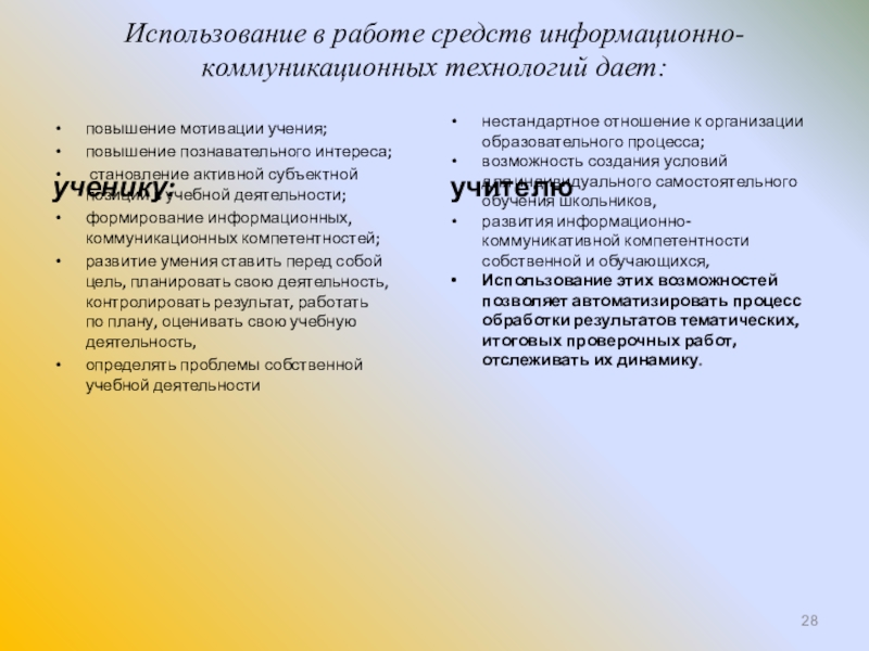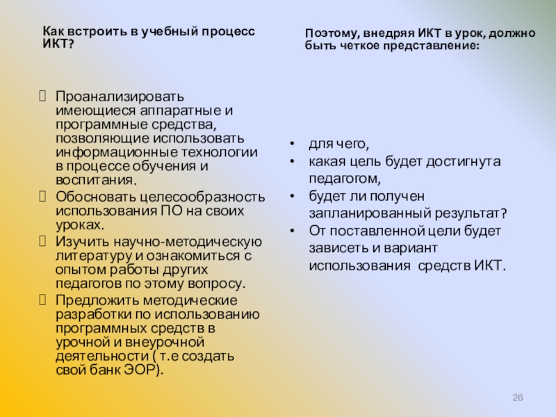 Поэтому, внедряя ИКТ в урок, должно быть четкое представление: