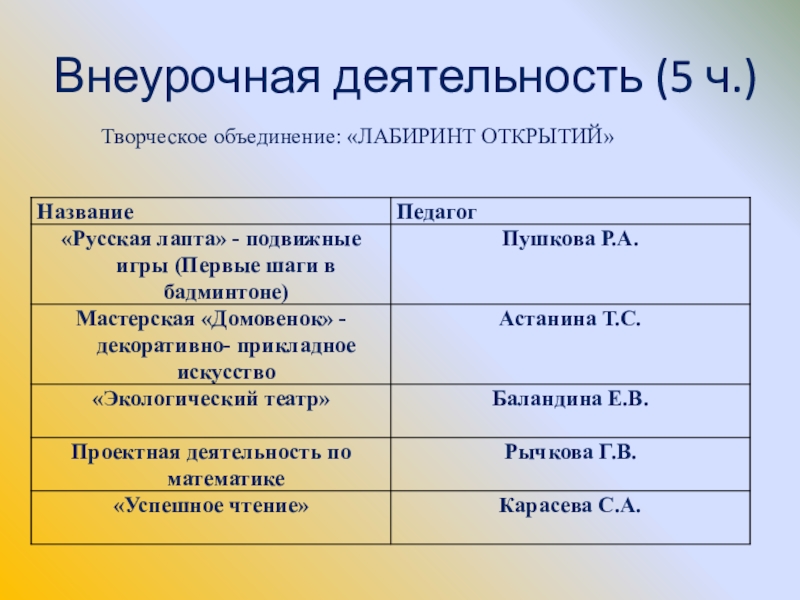 нестандартное отношение к организации образовательного процесса;