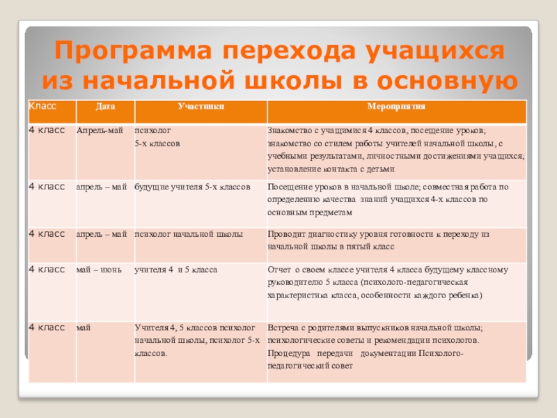 Слайд 27Программа перехода учащихся из начальной школы в основную