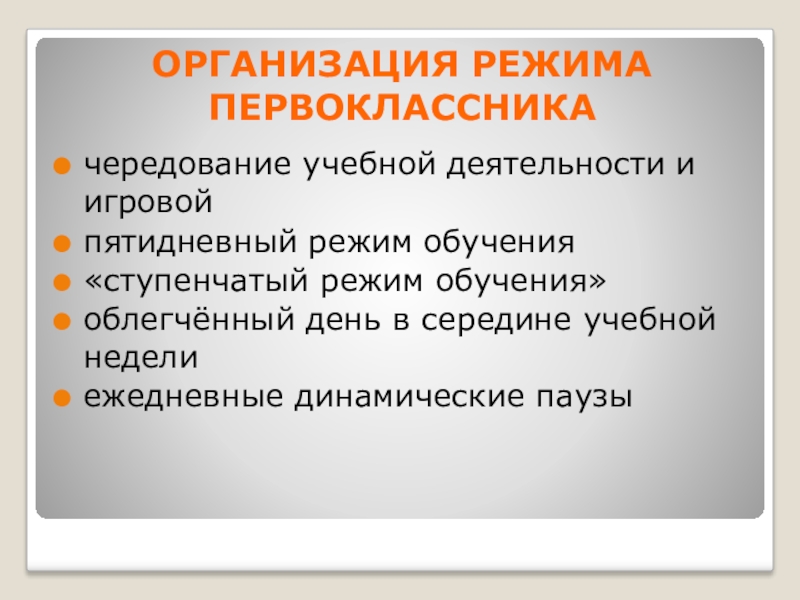 Слайд 5ОРГАНИЗАЦИЯ РЕЖИМА ПЕРВОКЛАССНИКА