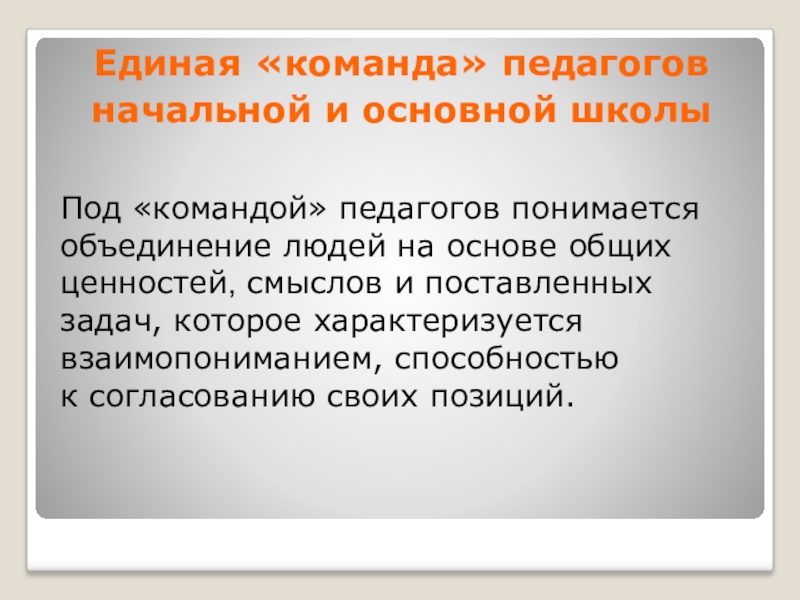 Слайд 20Единая «команда» педагогов начальной и основной школы
