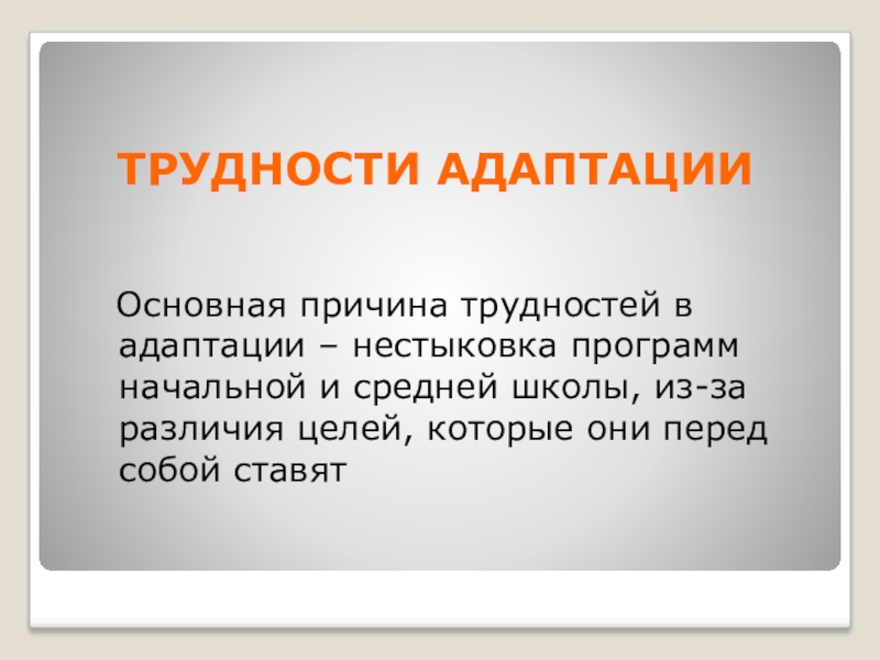 Основная причина трудностей в адаптации – нестыковка программ начальной