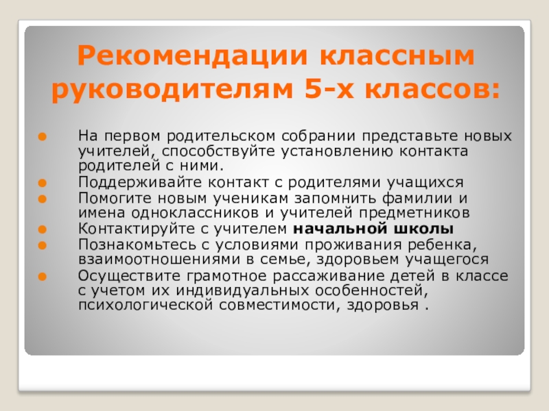 Слайд 25Рекомендации классным руководителям 5-х классов: