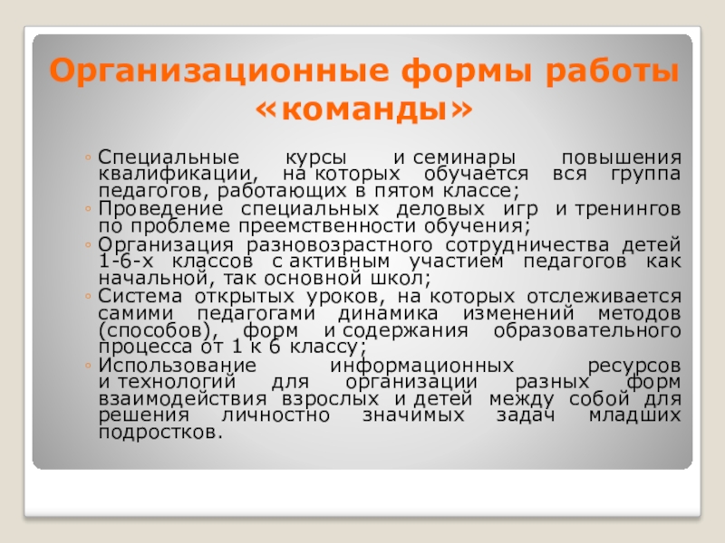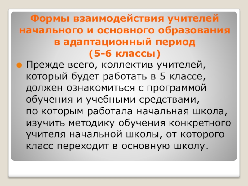 Формы взаимодействия учителей начального и основного образования в адаптационный период (5-6 классы)