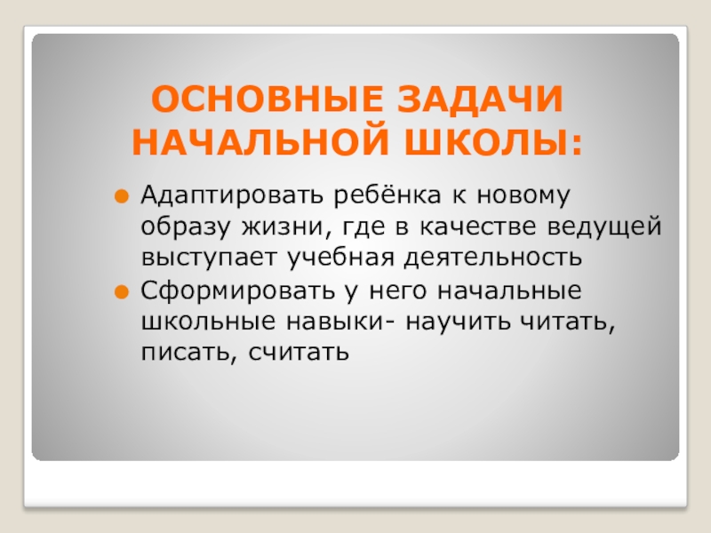 Слайд 16ОСНОВНЫЕ ЗАДАЧИ НАЧАЛЬНОЙ ШКОЛЫ: