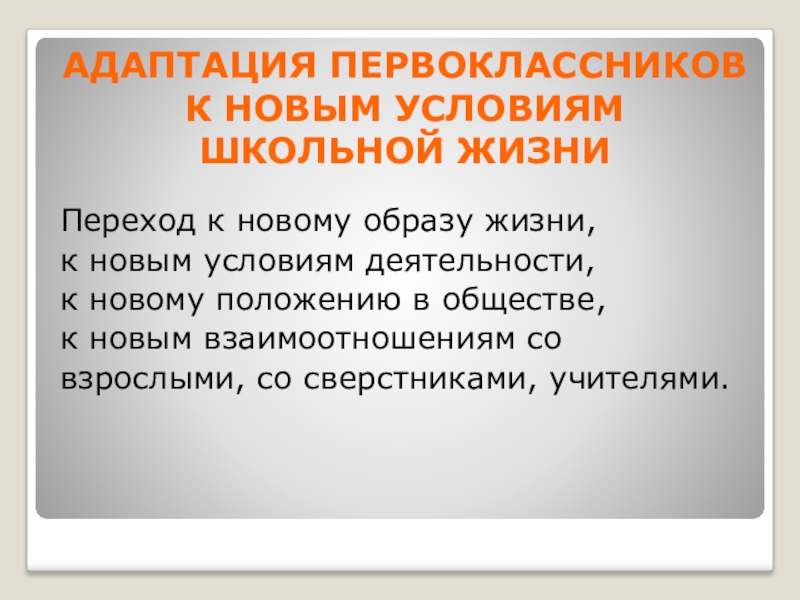 Слайд 2АДАПТАЦИЯ ПЕРВОКЛАССНИКОВ К НОВЫМ УСЛОВИЯМ