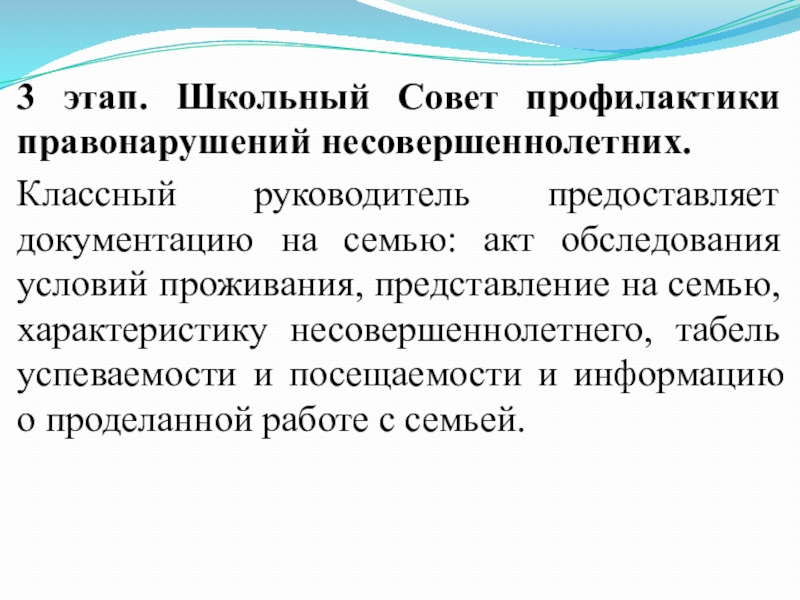3 этап. Школьный Совет профилактики правонарушений несовершеннолетних.
