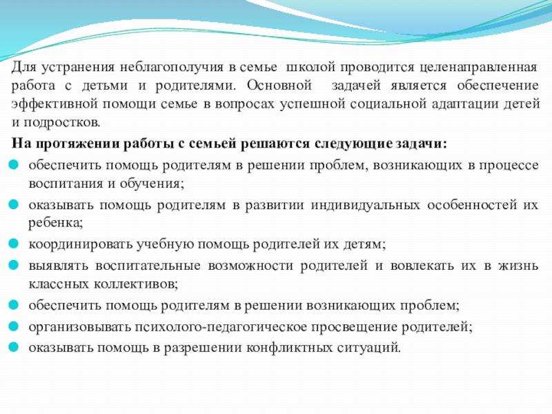Для устранения неблагополучия в семье школой проводится целенаправленная работа с детьми