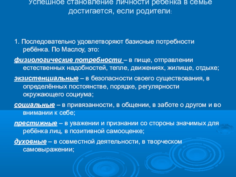 Слайд 9Успешное становление личности ребёнка в семье достигается, если родители: