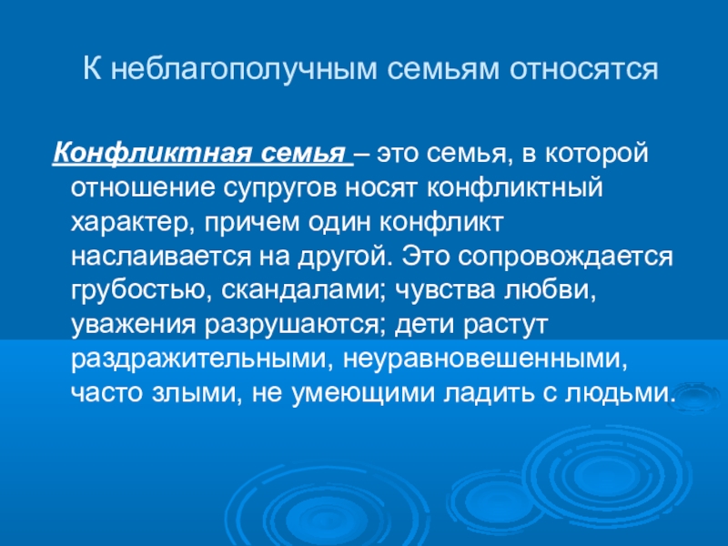 Слайд 5К неблагополучным семьям относятся