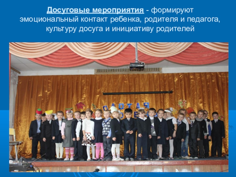 Досуговые мероприятия - формируют эмоциональный контакт ребенка, родителя и педагога, культуру