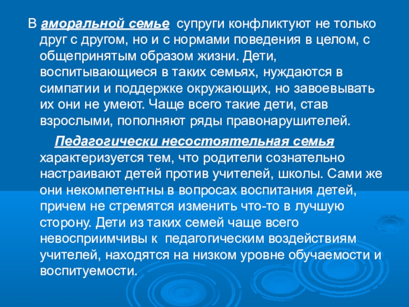 Слайд 6 В аморальной семье супруги конфликтуют не только друг с другом,
