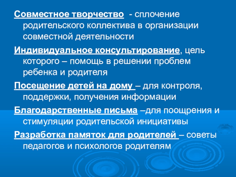 Слайд 19Совместное творчество - сплочение родительского коллектива в организации совместной деятельности