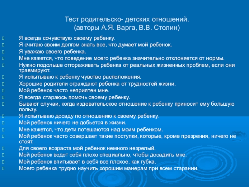 Слайд 22Тест родительско- детских отношений.