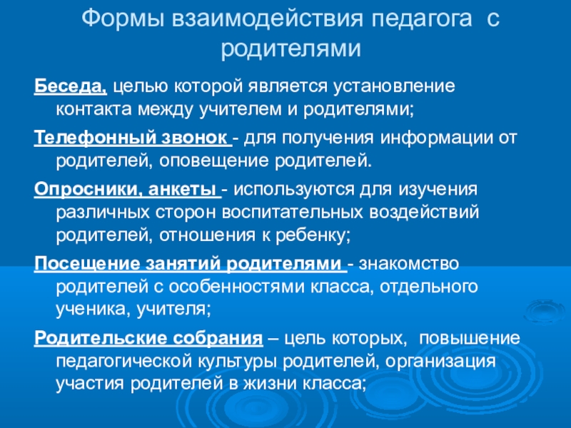 Слайд 11Формы взаимодействия педагога с родителями