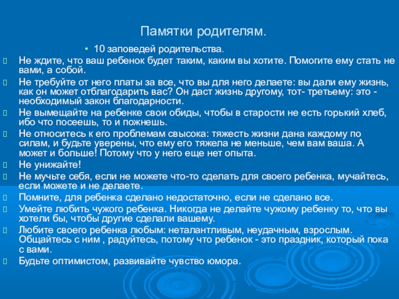 10 заповедей родительства.