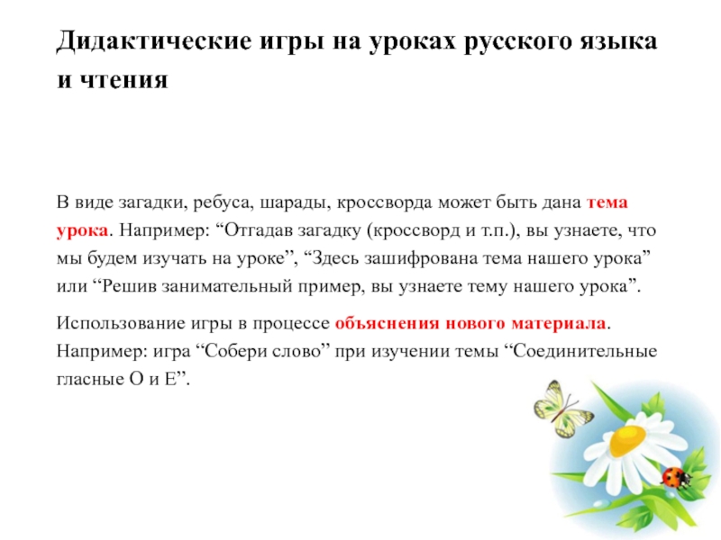 Слайд 37Дидактические игры на уроках русского языка и чтения