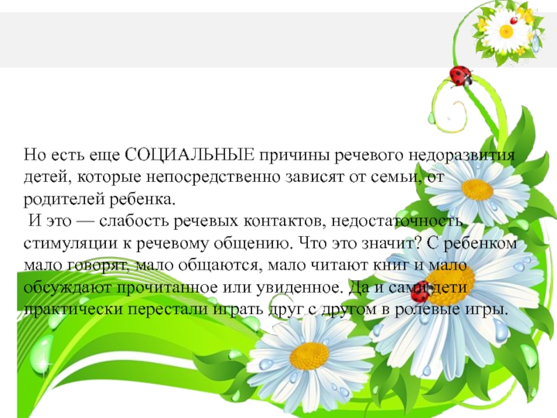 Слайд 5Но есть еще СОЦИАЛЬНЫЕ причины речевого недоразвития детей, которые непосредственно зависят