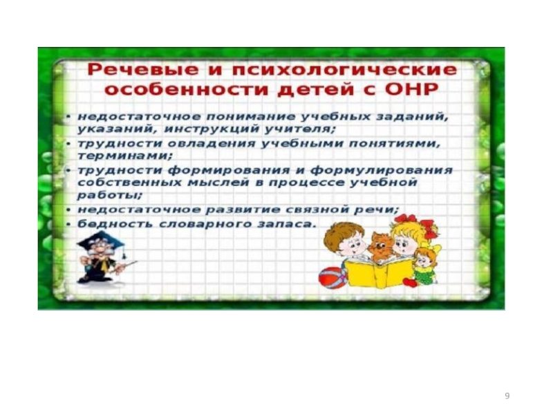 ПСИХОЛОГИЧЕСКИЕ — это недоразвитие познавательной и психической деятельности (Недоразвитие анализа, синтеза, обобщения, абстракции; нарушения слухового, зрительного восприятия, внимания, памяти; незрелость эмоционально-волевой сферы).