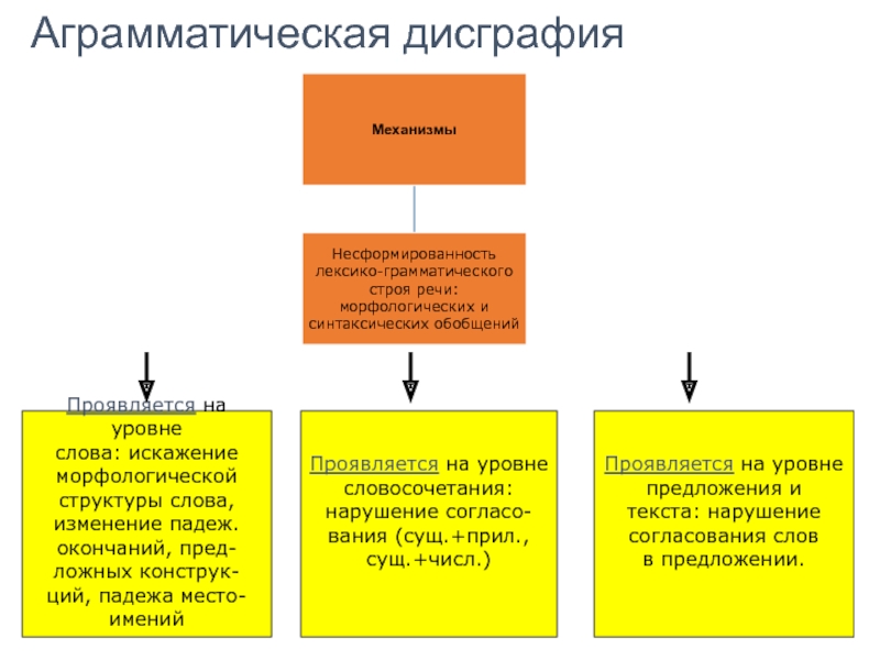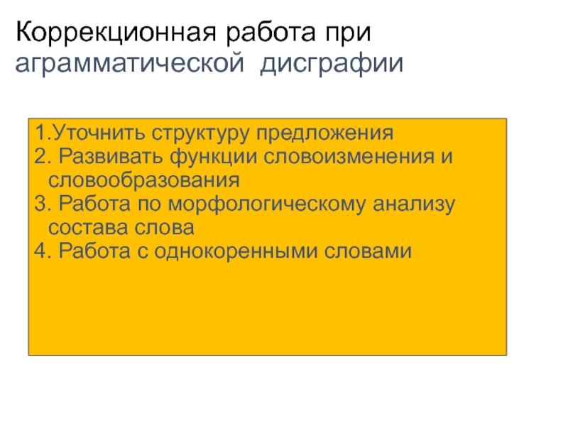 Слайд 28Коррекционная работа при аграмматической дисграфии