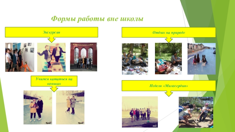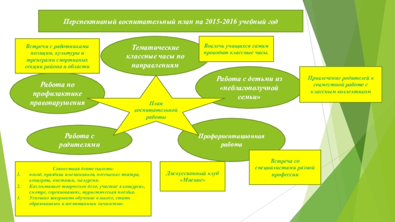 поход, праздник именинников, посещение театра, концерта, выставки, экскурсии.