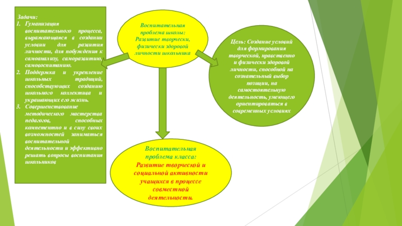 Гуманизация воспитательного процесса, выражающаяся в создании условии для развития личности, для побуждения к самоанализу, саморазвитию, самовоспитанию.