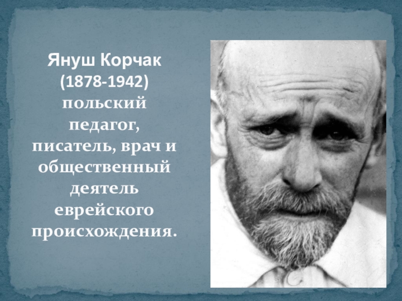 Слайд 10Януш Корчак (1878-1942) польский педагог, писатель, врач и общественный деятель еврейского происхождения.