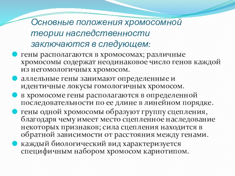 Основные положения хромосомной теории наследственности заключаются в следующем: