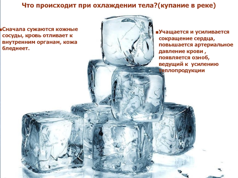 Учащается и усиливается сокращение сердца, повышается артериальное давление крови ,появляется озноб, ведущий к усилению теплопродукции