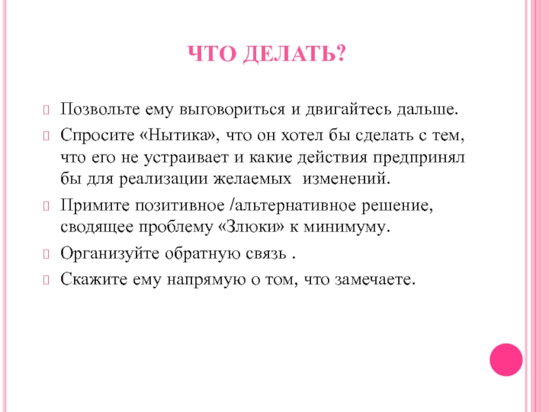 Примите позитивное /альтернативное решение, сводящее проблему «Злюки» к минимуму.